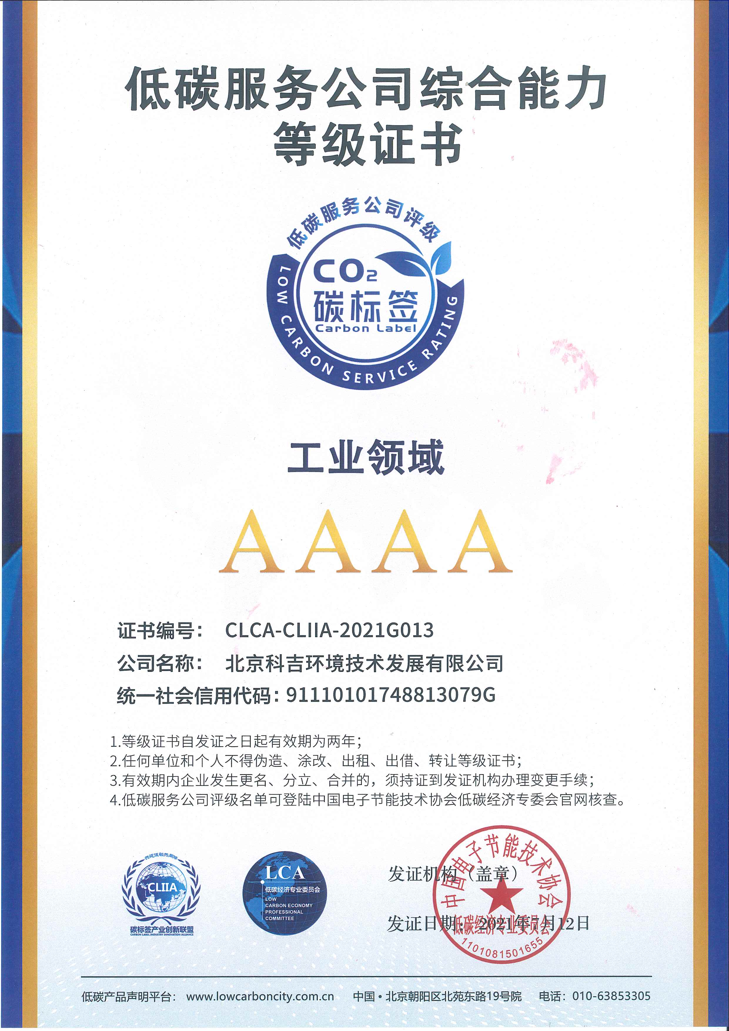 低碳服務(wù)公司綜合能力AAAA級證書(工業(yè)領(lǐng)域)