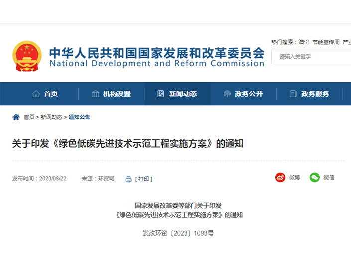國家發(fā)展改革委等部門關(guān)于印發(fā)《綠色低碳先進(jìn)技術(shù)示范工程實(shí)施方案》的通知發(fā)改環(huán)資〔2023〕1093號 各省、自治區(qū)、直轄市、新疆生產(chǎn)建設(shè)兵團(tuán)發(fā)展改革委、科技廳、工業(yè)和信息化主管部門、財(cái)政廳(局)、自然資源...
