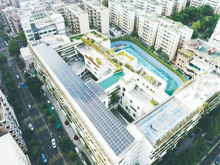 近零碳校園是深圳探索“近零碳”城市的其中一環(huán)。深圳作為國內(nèi)首批低碳試點城市,已率先打造不同種類的近零碳示范場景,通過從能源、交通、產(chǎn)業(yè)、建筑等多方面發(fā)力樹立國內(nèi)城市降碳標(biāo)桿?!鴪D為深圳福田區(qū)新洲小學(xué)俯...