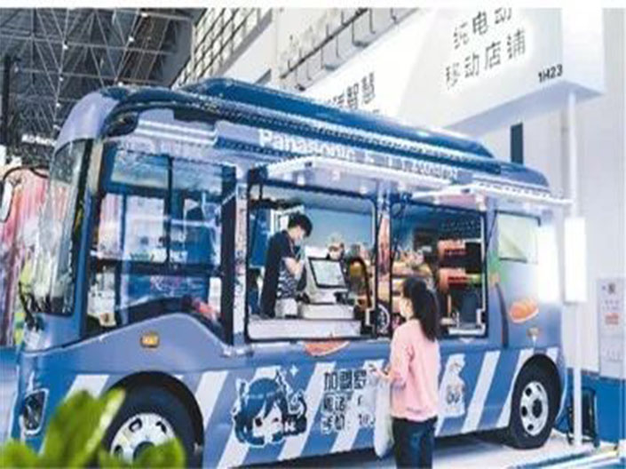 圖為消博會上展出的純電動移動便利店。新華社記者 王澤聰攝4月10日至15日,第三屆中國國際消費品博覽會(簡稱“消博會”)在海南省??谑信e行。國際社會關(guān)注到,本屆消博會踐行“綠色辦展、低碳辦會”理念,通過“綠...