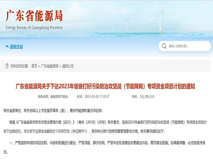 廣東省能源局發(fā)文,下達2023年省級打好污染防治攻堅戰(zhàn)(節(jié)能降耗)專項資金項目計劃,共33個項目獲得1.35億元資金支持。廣東省能源局關于下達2023年省級打好污染防治攻堅戰(zhàn)(節(jié)能降耗)專項資金項目計劃的通知有關省...