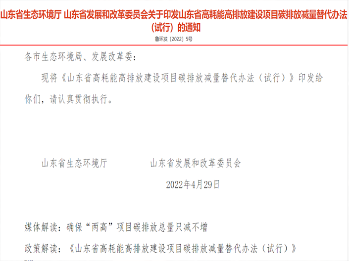 山東省生態(tài)環(huán)境廳、省發(fā)展改革委聯(lián)合印發(fā)《山東省高耗能高排放建設(shè)項(xiàng)目碳排放減量替代辦法(試行)》,主要包括煉化、焦化、包括煉化、焦化、煤制液體燃料、基礎(chǔ)化學(xué)原料、化肥、輪胎、水泥、石灰、瀝青防水材料、平...
