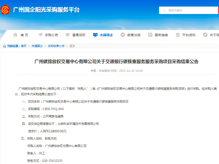 2021年12月22日,我司成功中標(biāo)廣州碳排放權(quán)交易中心有限公司關(guān)于交通銀行碳核查服務(wù)項目。后續(xù),我司將集中技術(shù)力量,為廣東省內(nèi)交通銀行十六家分行營業(yè)部或支行在2021年11月1日至2023年12月31日運營期間已產(chǎn)生及預(yù)...